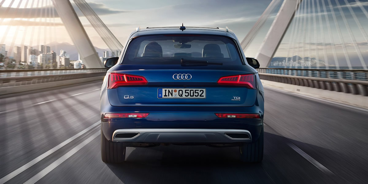 Todos los detalles del Nuevo Audi Q5 estan dominados por el diseno caracteristico Q, que incorpora el dinamismo y la eficiencia. Como el llamativo capo o la linea del techo ligeramente inclinado, la nueva ubicacion de los espejos traseros y la linea cromada de la ventana.